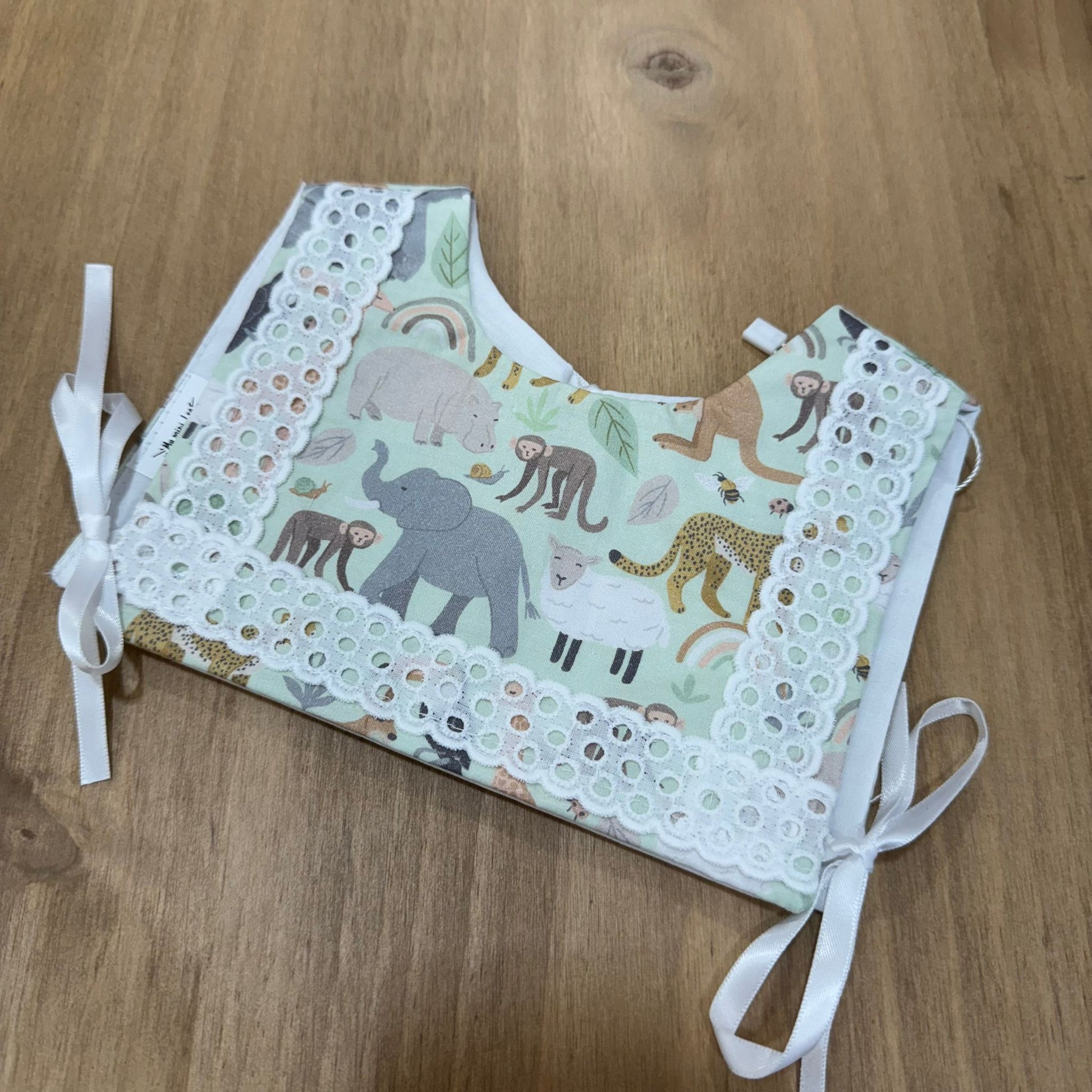 • Tira Bordada Artesanal: Aporta un toque romántico y muy cuidado, convirtiendo el babero en un accesorio especial.