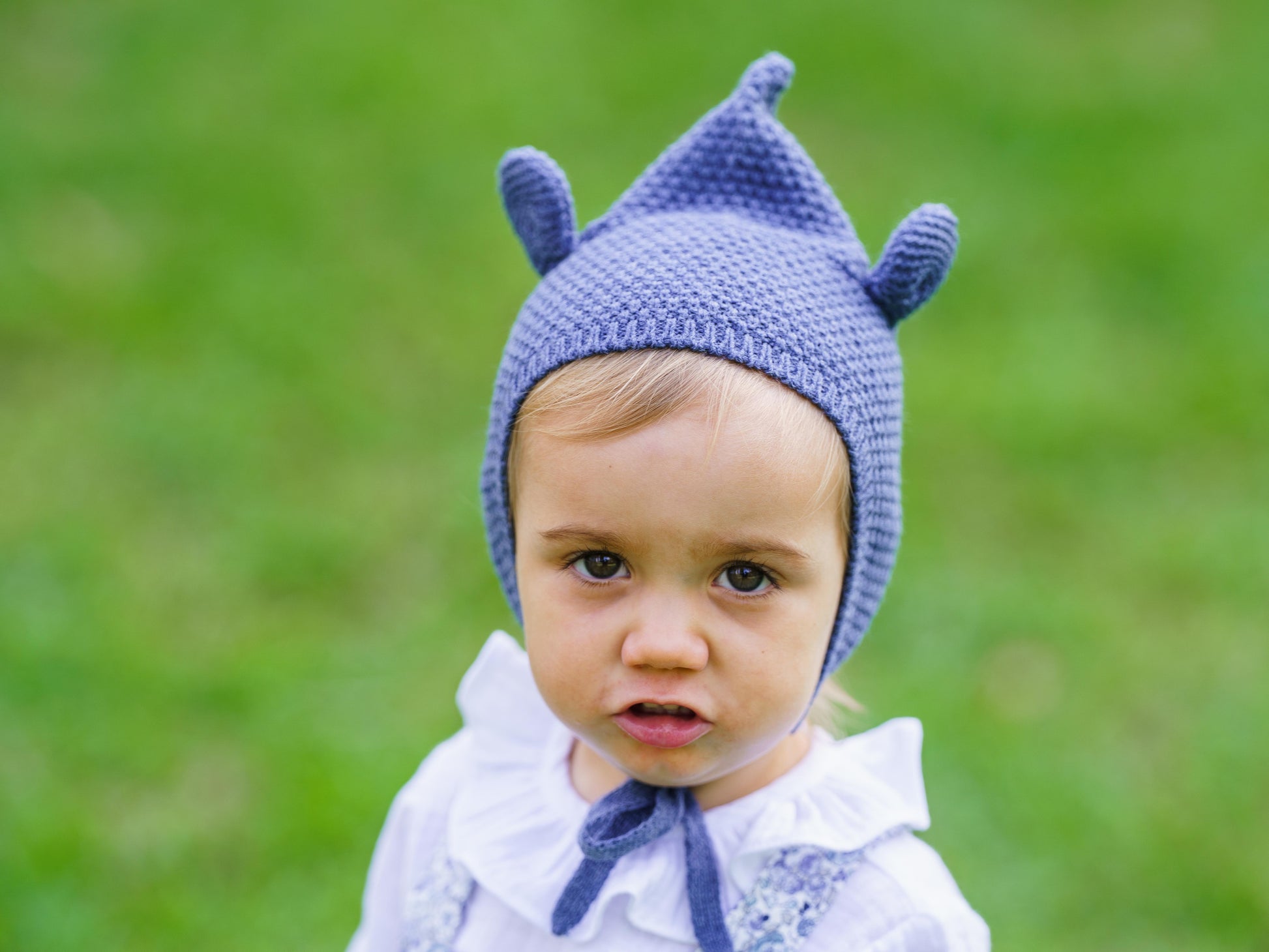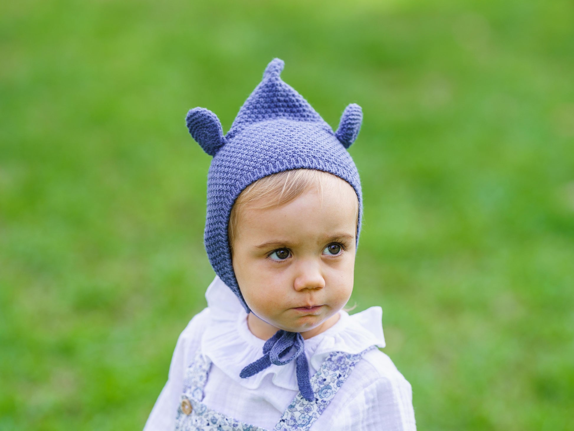Capota tipo gnomo en un precioso color azul, confeccionada en tejido de punto 100% acrílico, que garantiza suavidad y confort para los más pequeños. Su diseño de forma puntiaguda añade un toque divertido y diferente, manteniendo la cabecita de tu bebé bien abrigada.