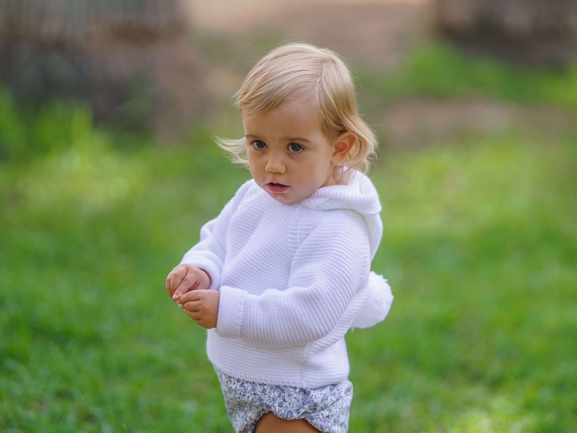Julieta tiene 18 meses, mide 84 cm, pesa 12kg y lleva la talla 12 meses de jersey.
