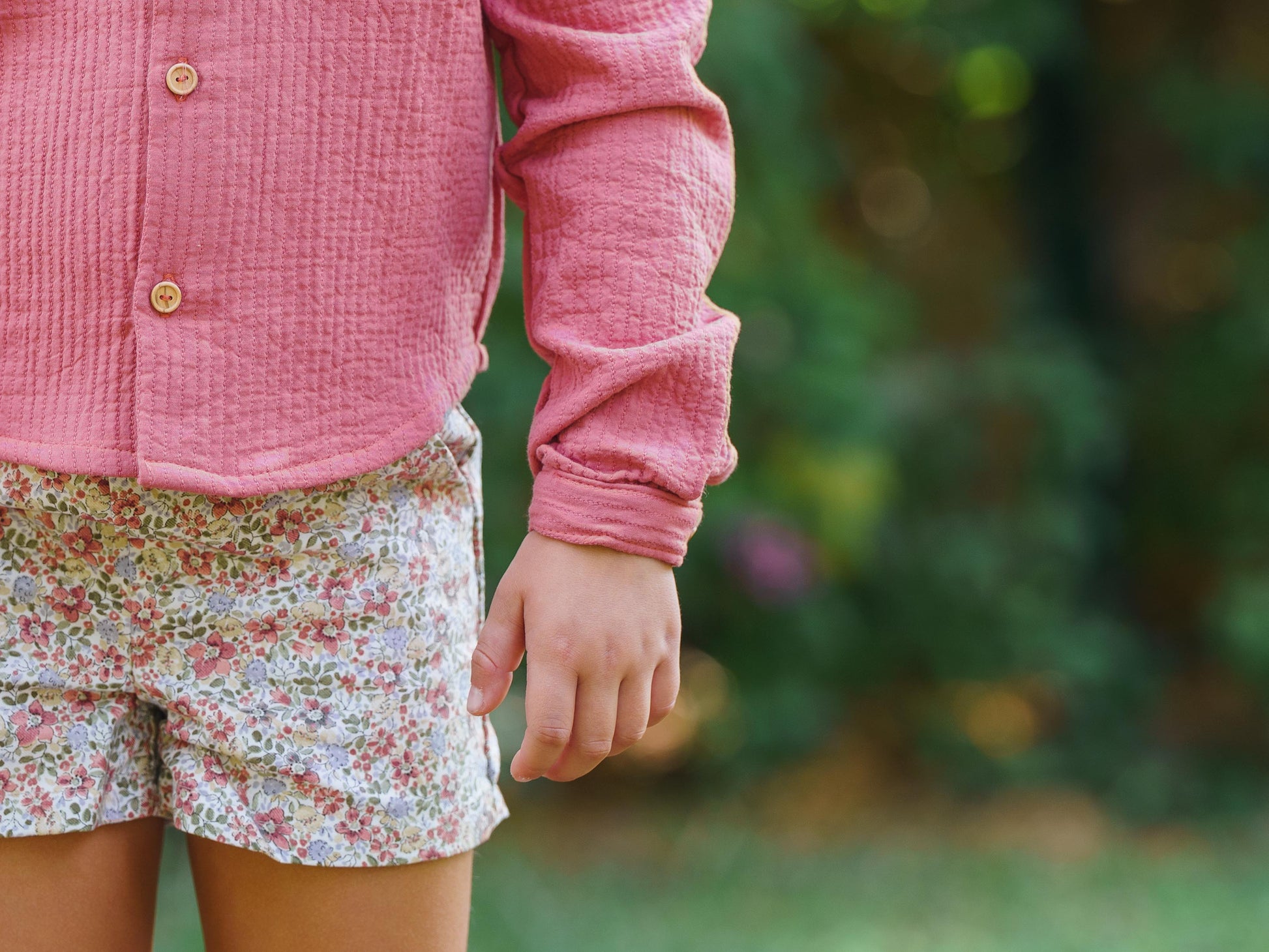 El Pantalón Corto “Abeto” es una prenda versátil y cómoda, perfecta para acompañar a los más pequeños durante los meses de otoño e invierno. Confeccionado en 100% algodón, su tejido floral en tonos beige, burdeos y verde oliva aporta un aire cálido y natural, ideal para crear conjuntos coordinados llenos de encanto.