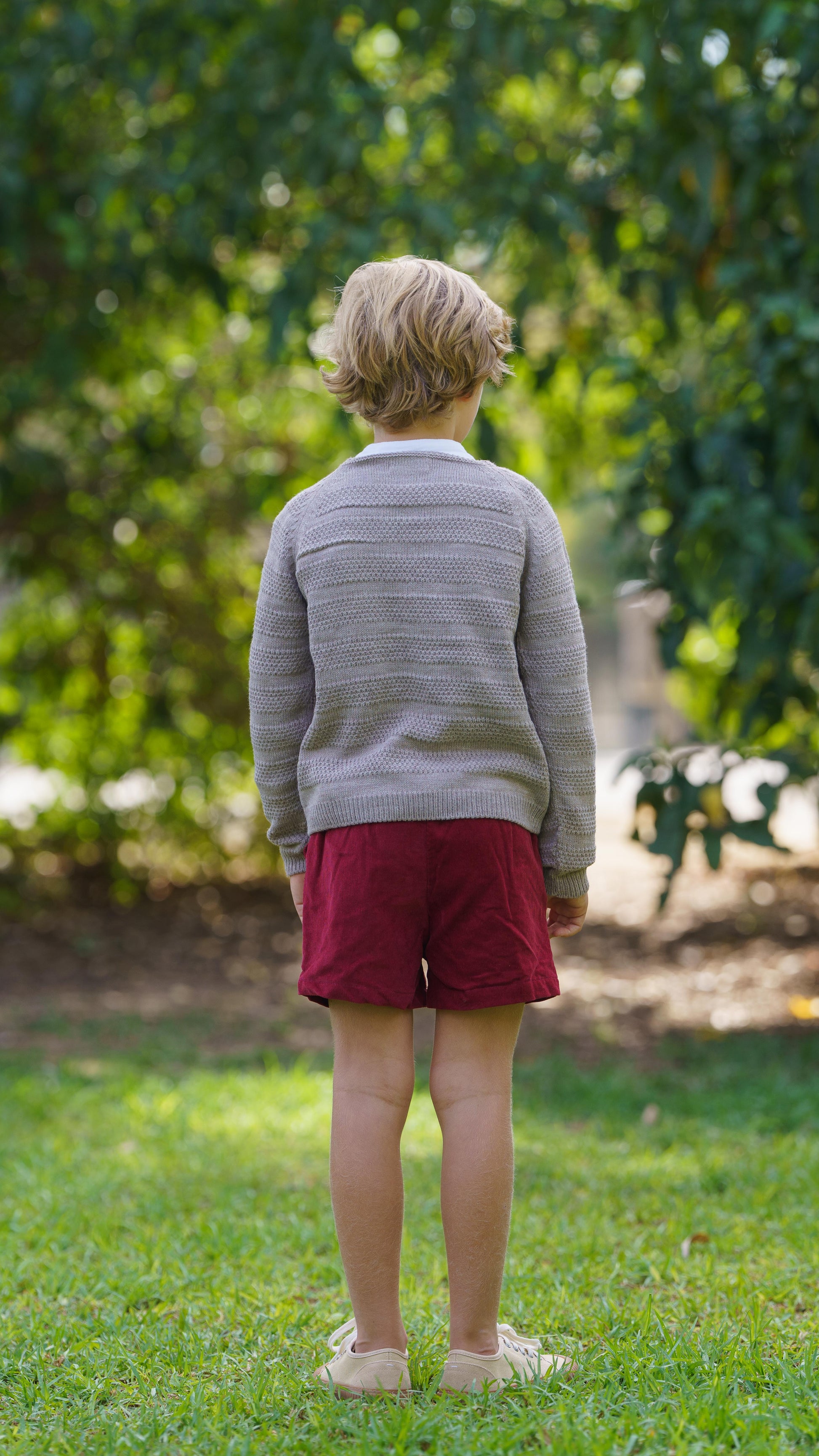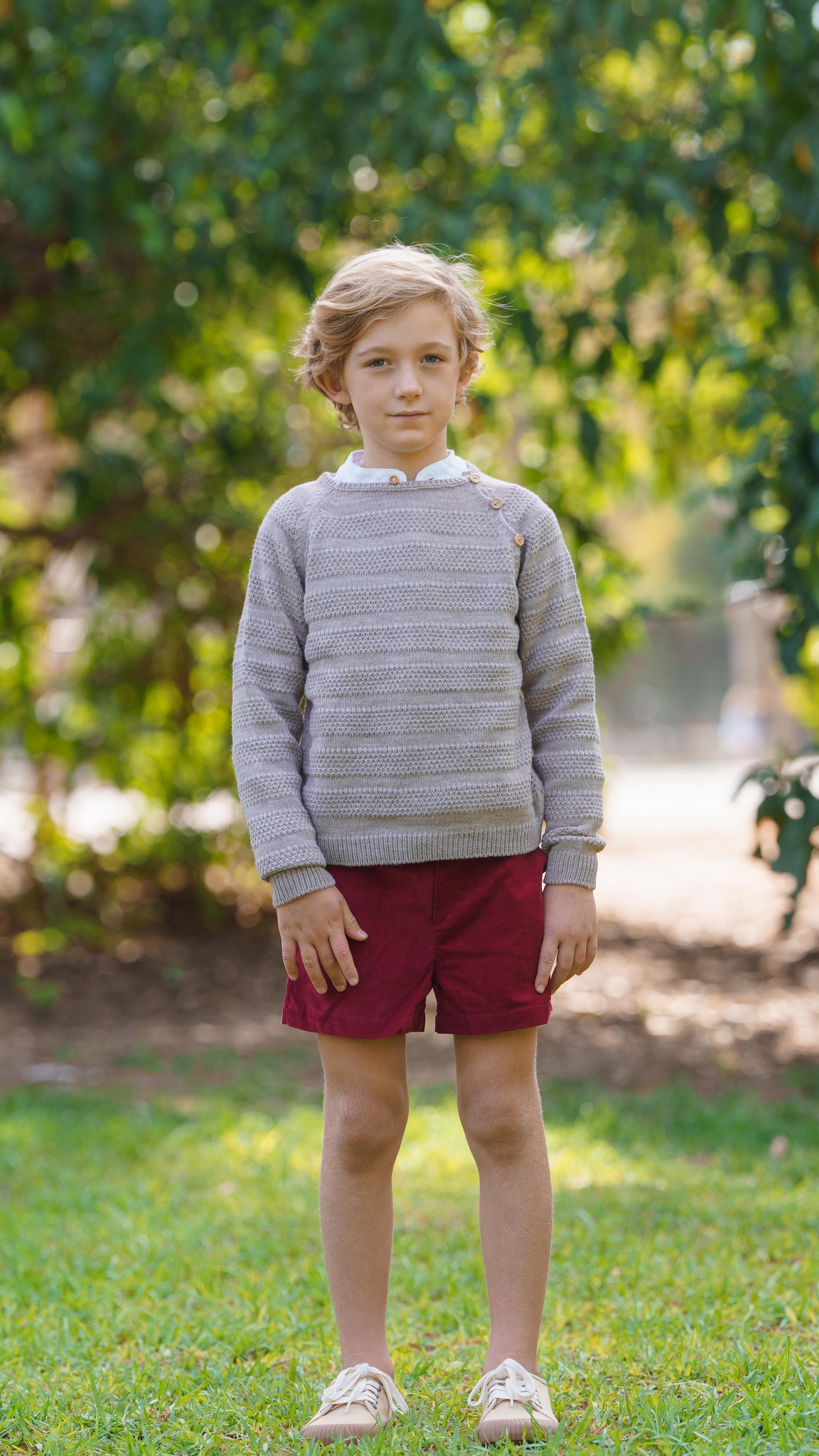 El Pantalón corto Susurro de nuestra colección está confeccionado en pana granate 100% algodón, diseñado para ofrecer la máxima comodidad sin perder estilo. Su cintura elástica asegura un ajuste suave y sin presión, permitiendo que los más pequeños jueguen y se muevan con total libertad.
