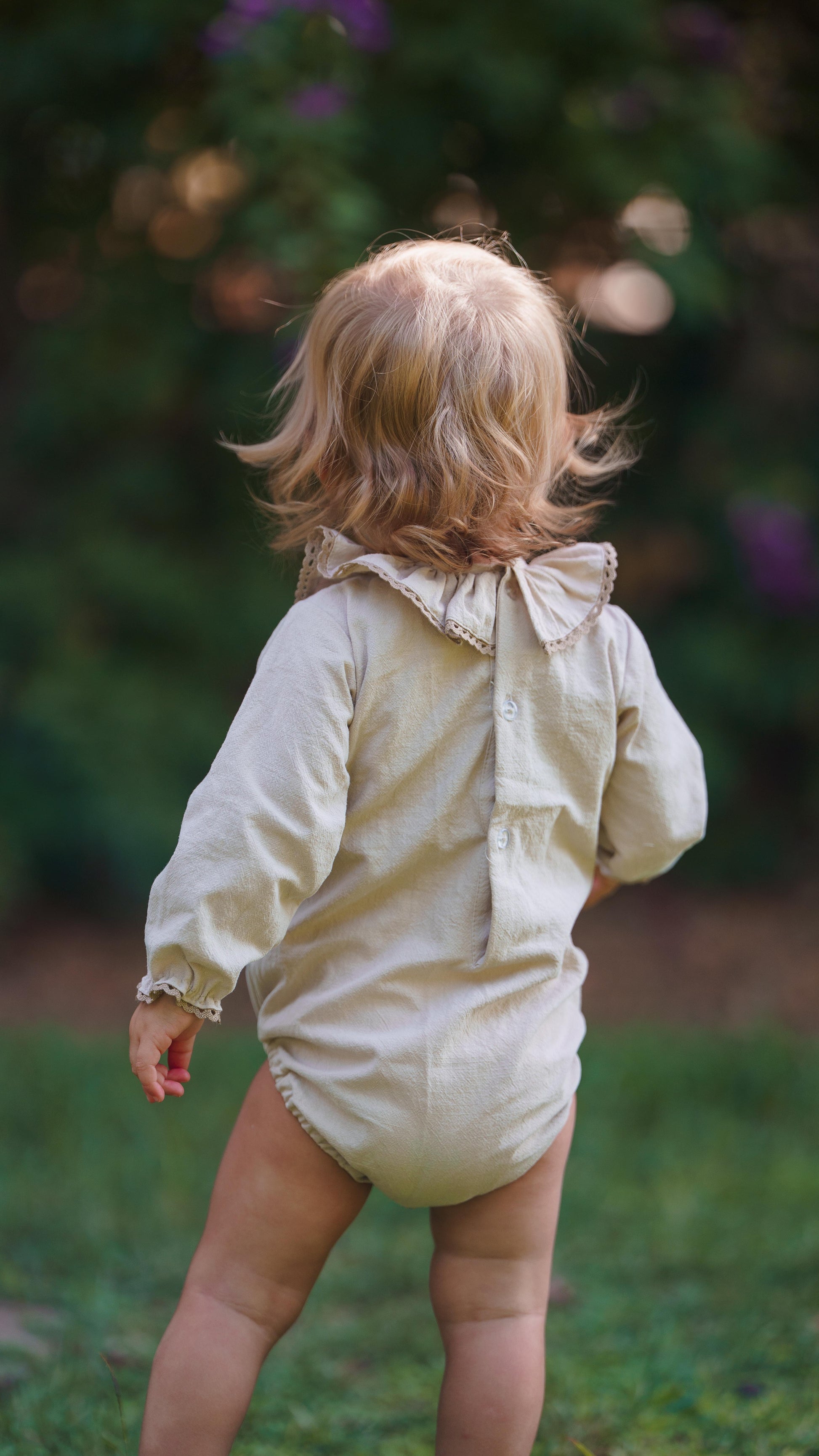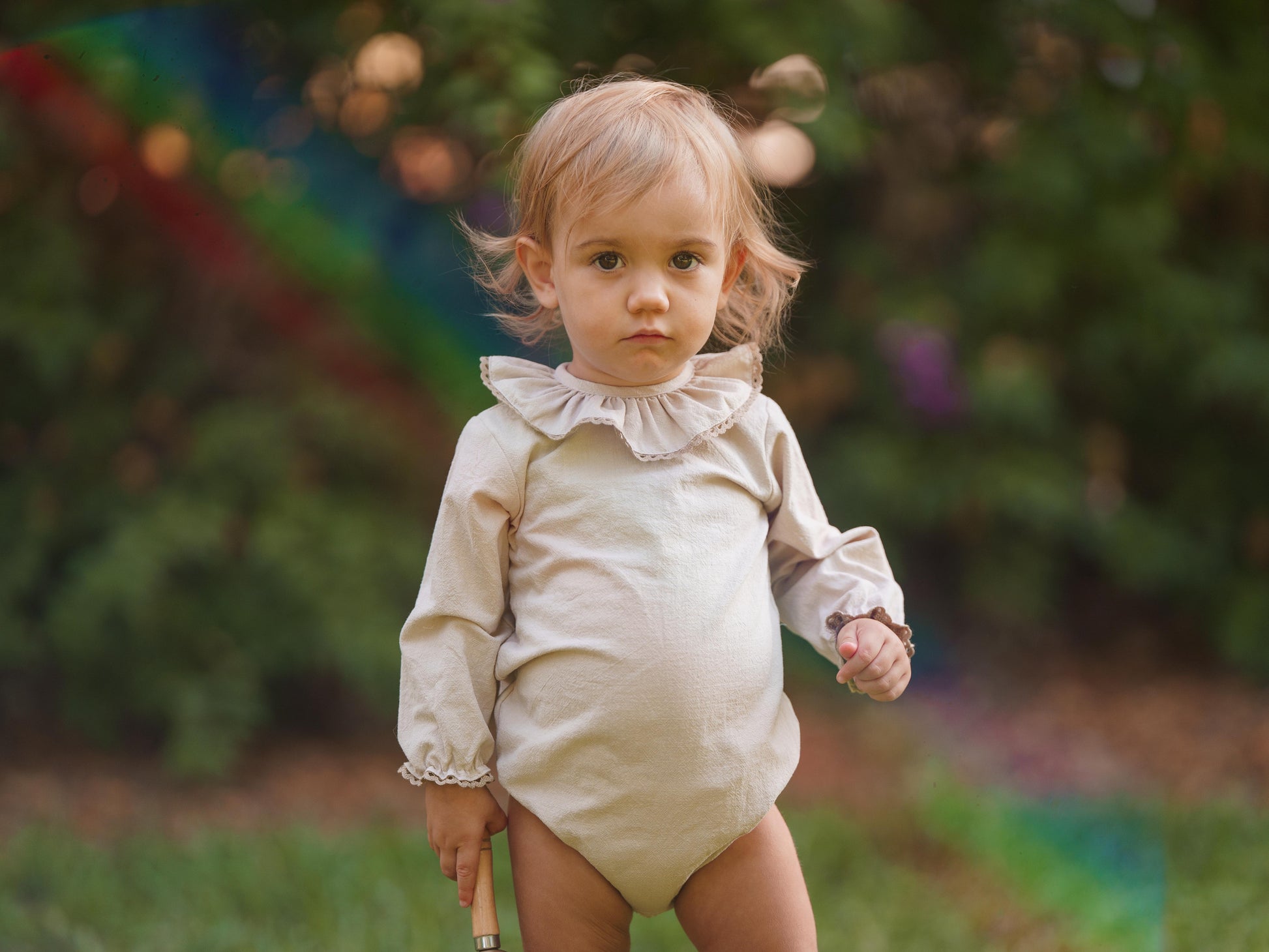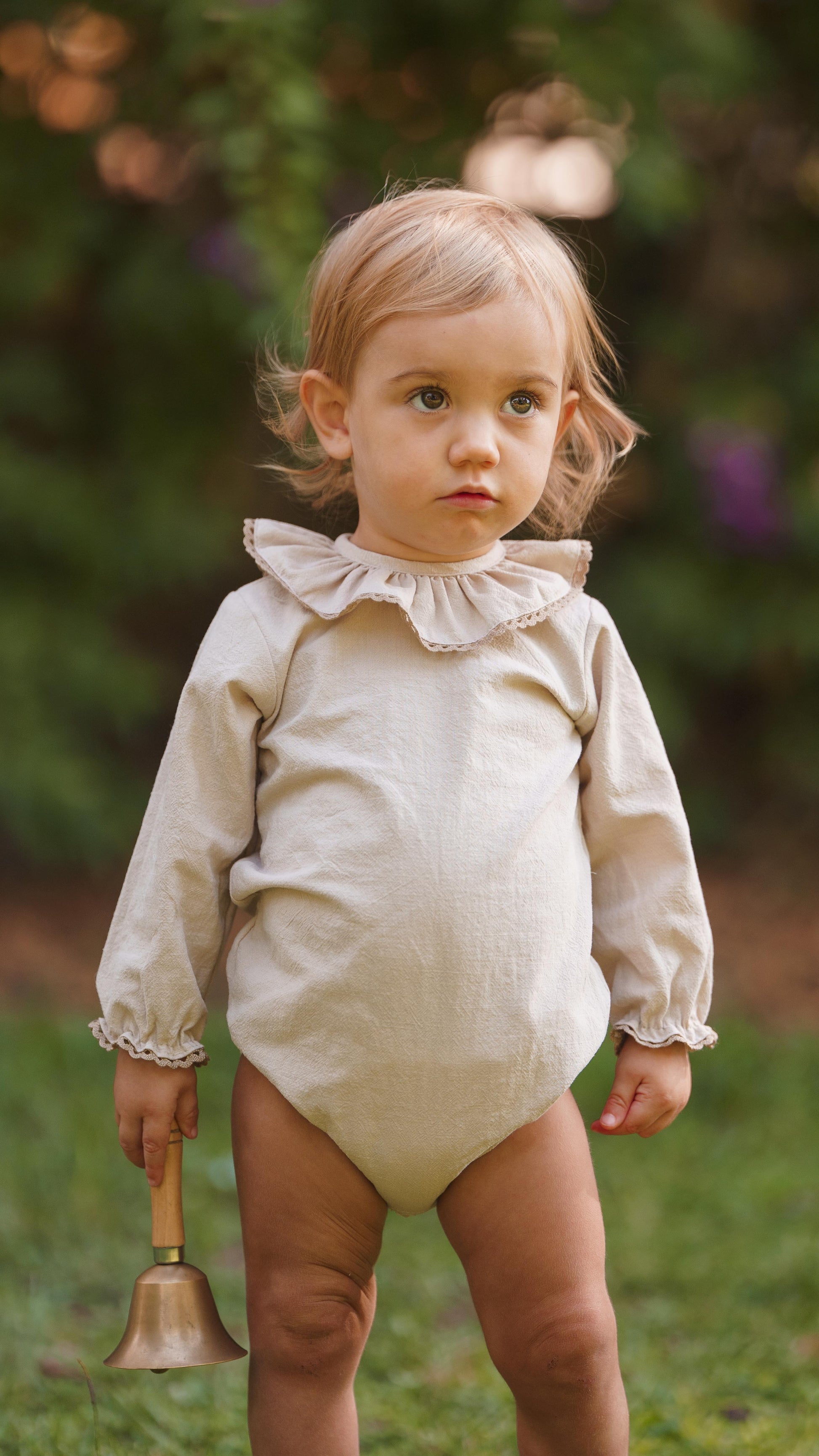 El Pelele Abeto es una prenda cómoda y versátil, perfecta para los meses de otoño e invierno. Confeccionado en algodón 100%, utiliza el tejido exclusivo de la subcolección Abeto: un tono beige crudo, cálido y atemporal, que transmite sencillez y armonía.