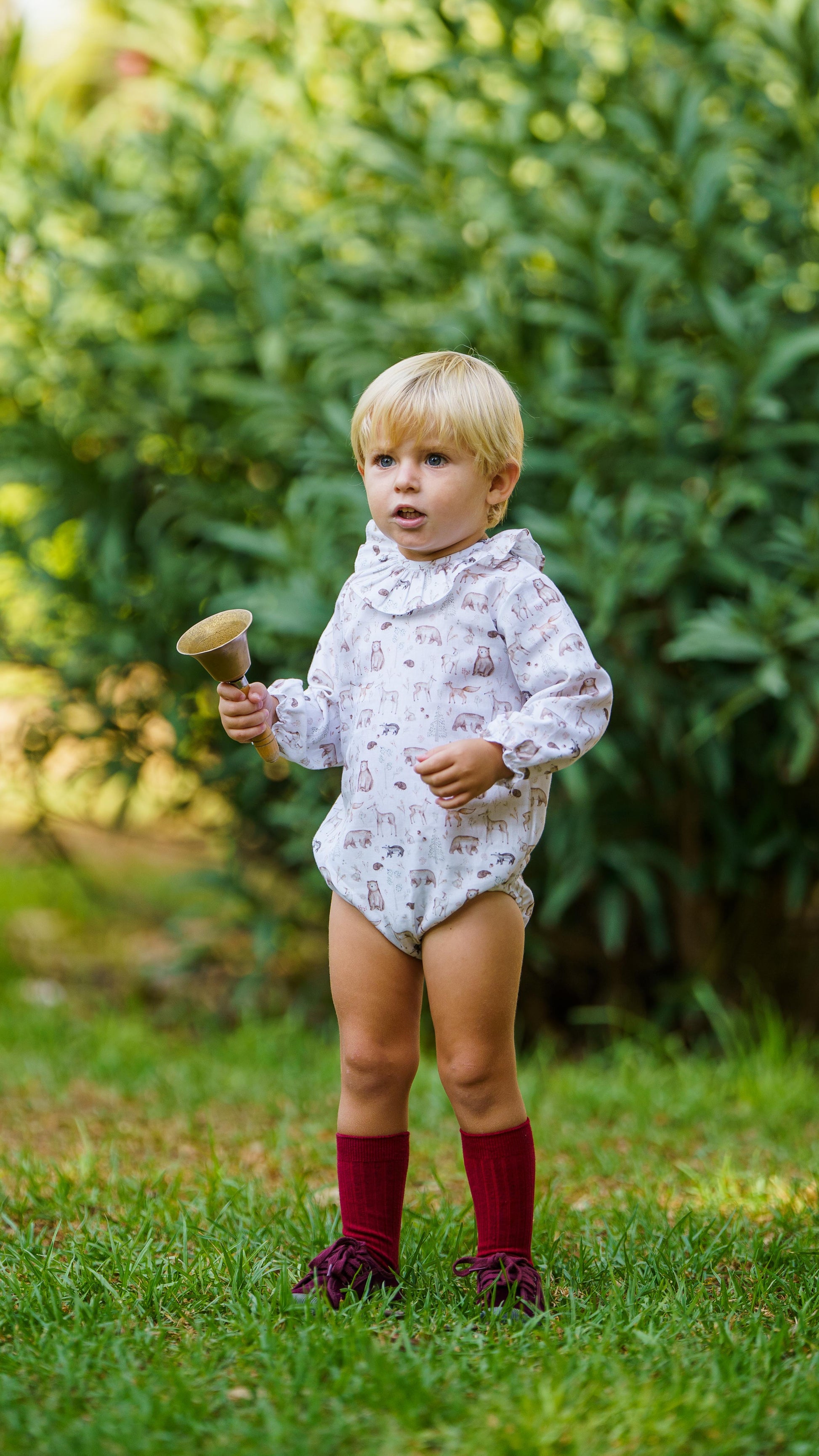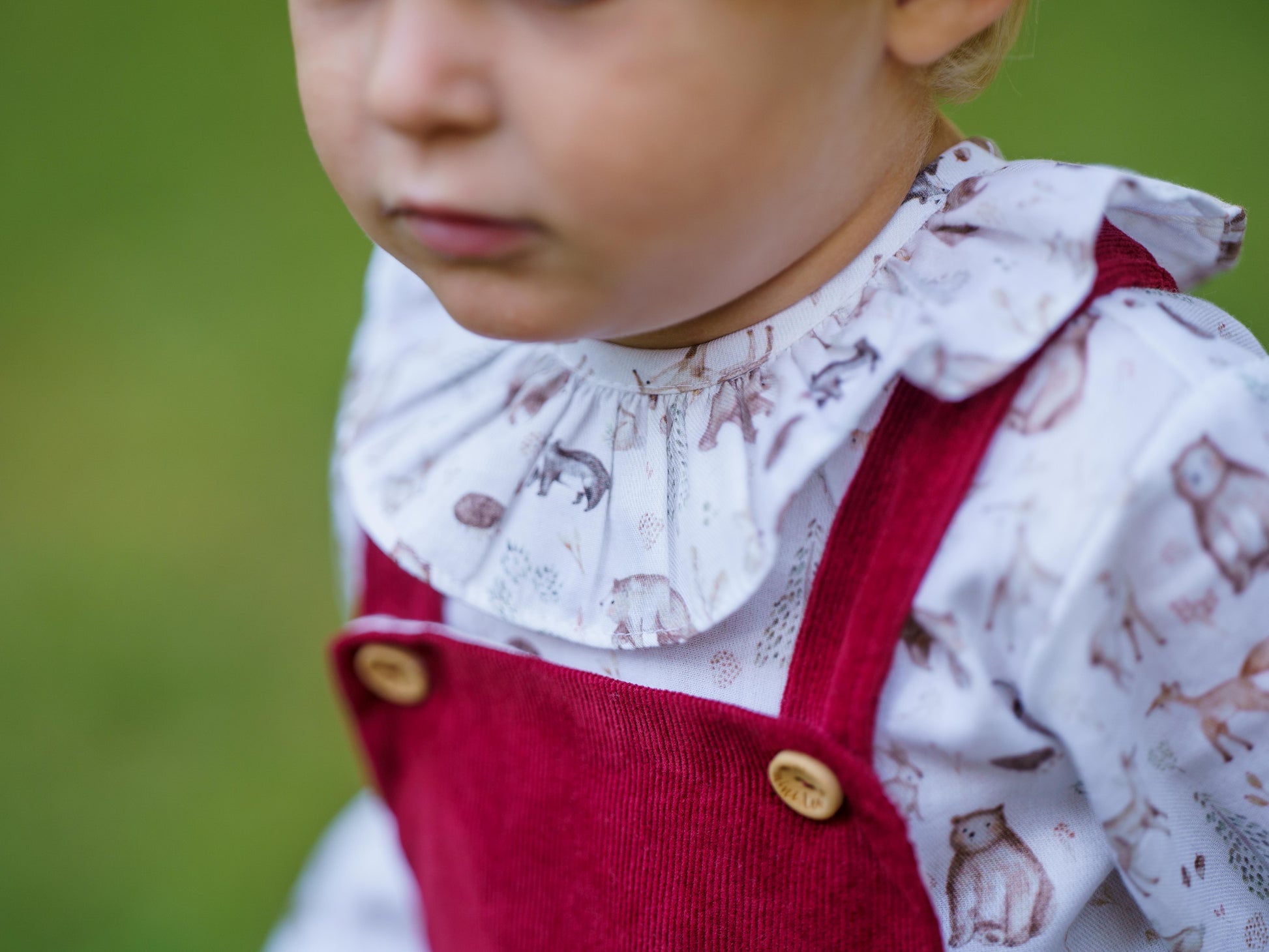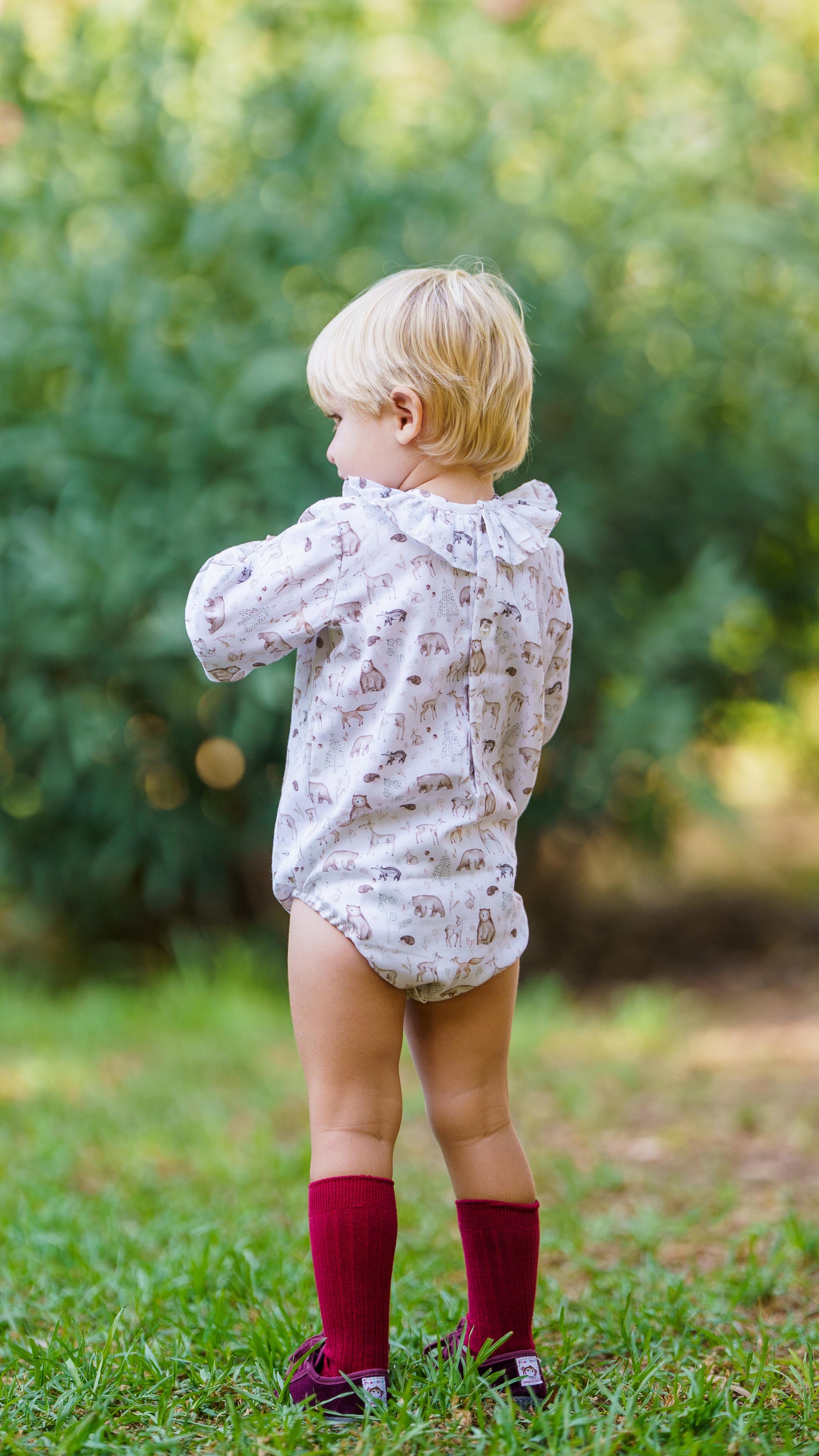 El Pelele Cabaña es una prenda cómoda y versátil, perfecta para los meses de otoño e invierno. Confeccionado en 100% algodón viyela, utiliza el tejido exclusivo de la subcolección Cabaña: un delicado estampado de osos, zorros, ciervos y pequeños detalles vegetales, que evocan la magia y la ternura de la vida en el bosque.