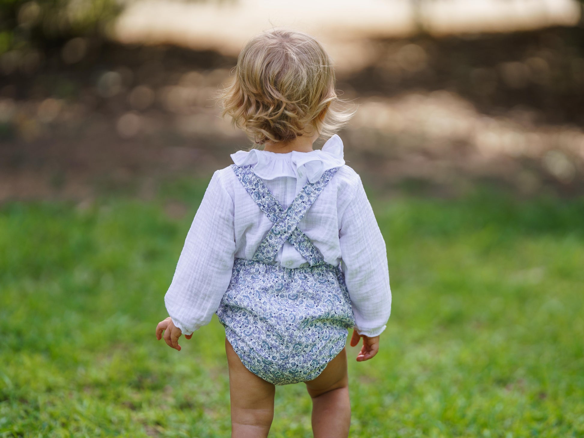 El Pelele Raíz es una prenda encantadora y versátil, confeccionada en 100% algodón con delicadas flores en tonos azulados y crudos sobre fondo natural. Un diseño que transmite dulzura, calma y elegancia atemporal, perfecto para acompañar a tu bebé en cualquier ocasión.