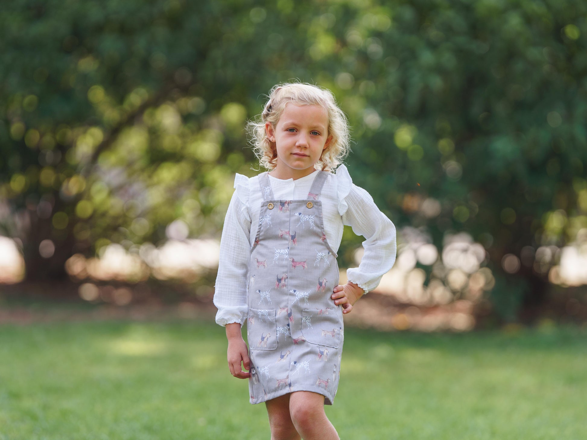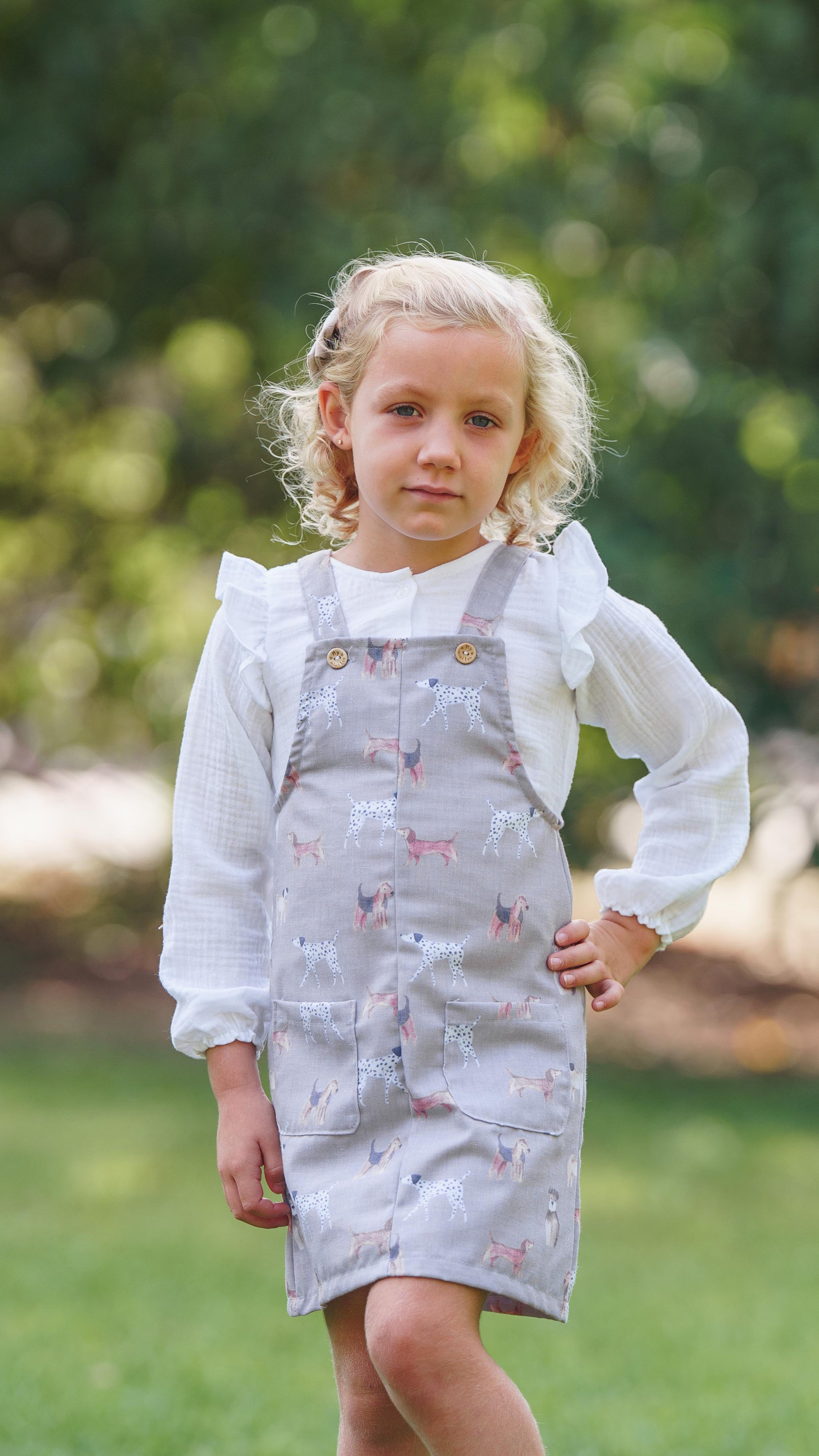 Su diseño cómodo y funcional permite total libertad de movimiento, siendo ideal tanto para el día a día como para ocasiones especiales. Los tirantes ajustables con botón de madera cuentan con centímetros extra, permitiendo que la prenda se adapte al crecimiento de la niña y pueda disfrutarse durante más tiempo.
