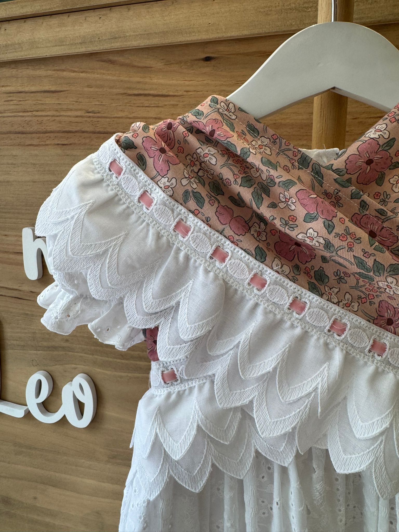🎀 Detalle de tira bordada y cinta rosa