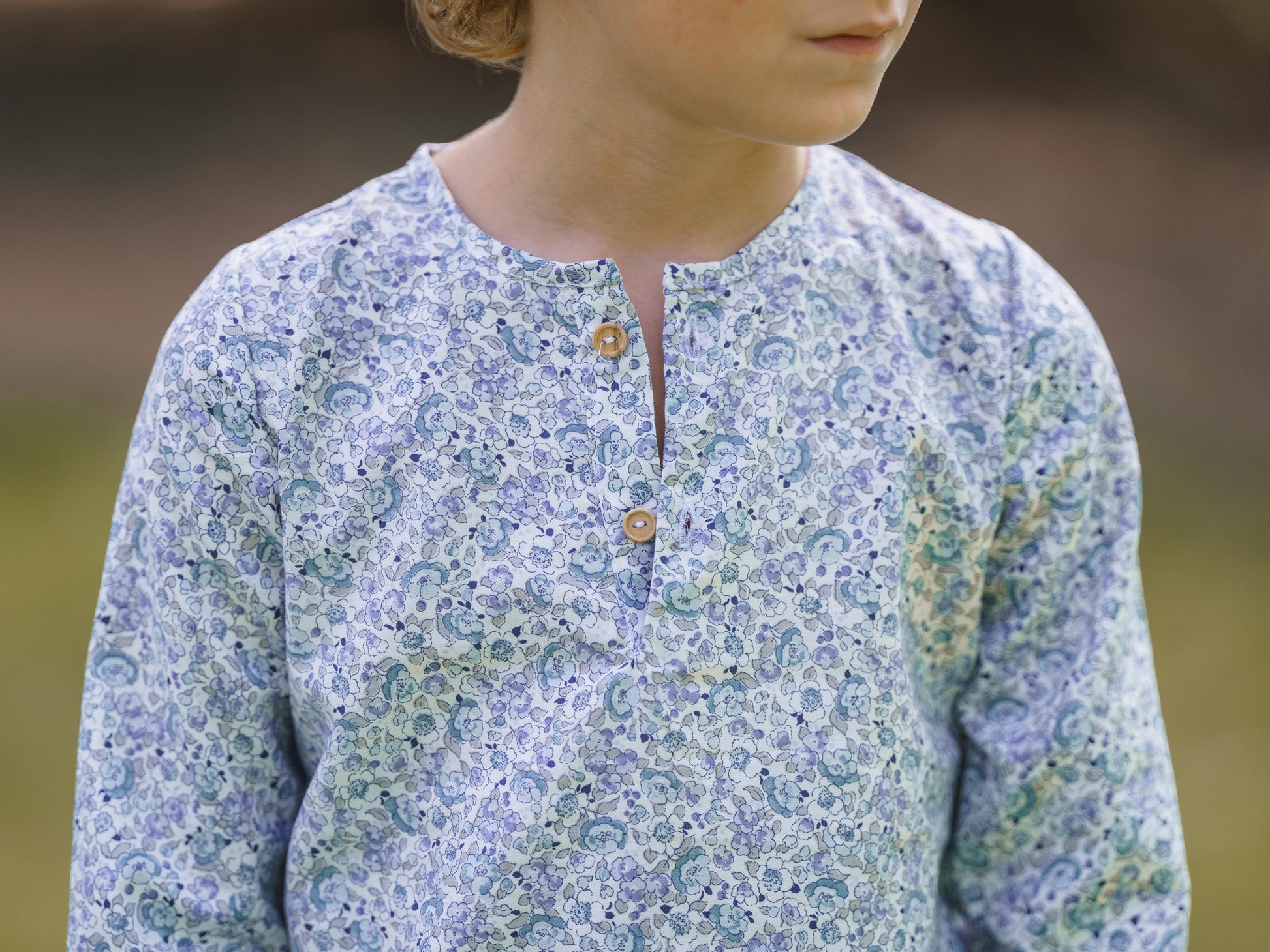 La Polera Raíz es una prenda imprescindible para el otoño e invierno, confeccionada en viyela 100% algodón, un tejido suave, cálido y respetuoso con la piel de los más pequeños. Su estampado floral en tonos azulados y crudos sobre fondo natural aporta un aire romántico y versátil, perfecto para combinar con diferentes prendas de la colección.