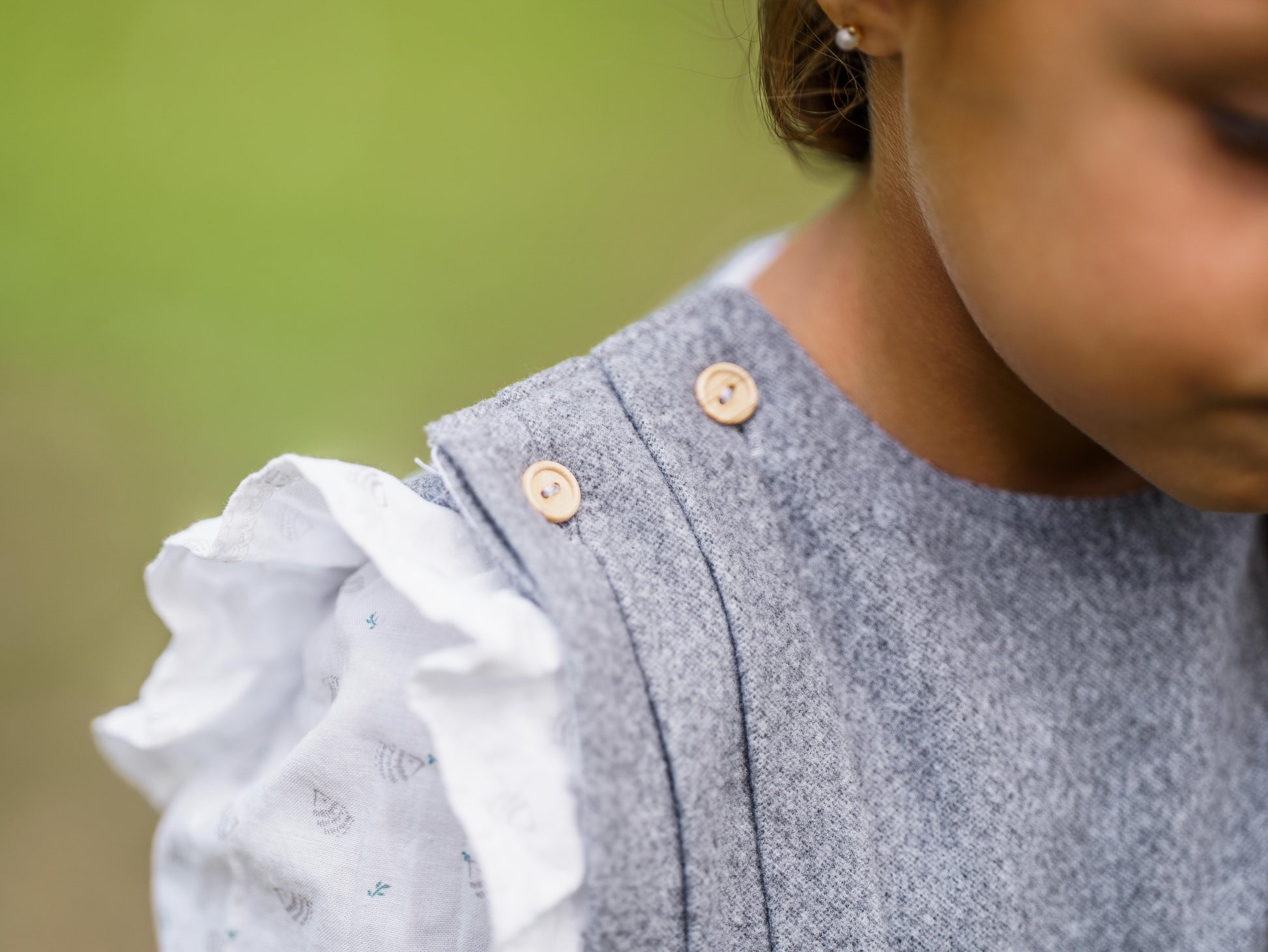 Su corte estructurado, con delicados pliegues en la parte superior, realza la silueta sin perder la comodidad que caracteriza a las prendas de My Mini Leo. Los botones de madera en los hombros aportan un toque natural y artesanal, mientras que la falda con vuelo suave permite libertad de movimiento para jugar, explorar y disfrutar con estilo.